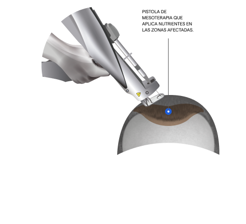 A través de la mesoterapia capilar. Se trata de una eficaz técnica médica de administración de medicamentos desarrollada por el Dr. Michel Pistor en 1952. Consiste en la administración de forma local de pequeñas dosis de nutrientes con microinyecciones superficiales que actúan localmente. El procedimiento es mínimamente invasivo y se aplica mientras nuestros pacientes disfrutan de una placentera experiencia en nuestros sillones masajeadores.